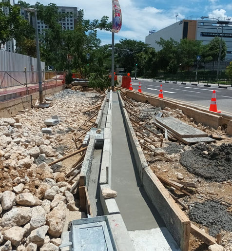 1. Construction of road works (e.g. Interlocking/ asphalt/ rigid pavement) including road kerbs, drainage, side table, footpaths;